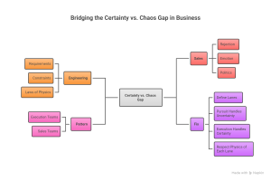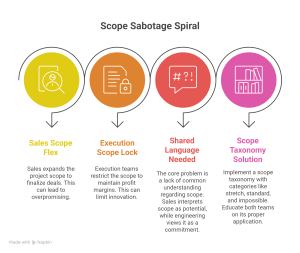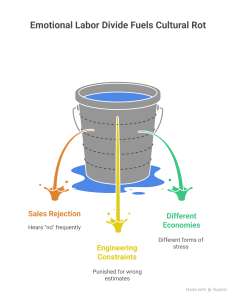 On the other side, you’ve got engineering, product, and delivery — the execution team — living in a universe defined by physics, specs, algorithms, project plans, and scope. Their world is clean, logical, predictable (unless someone screws with the scope).